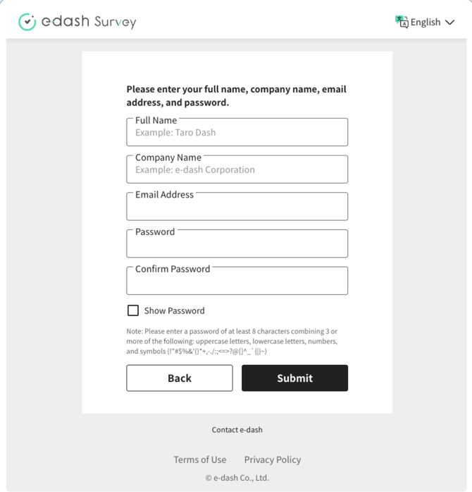 This procedure is only for individuals who have not yet created an e-dash account. Please access the URL shared by your supplier and follow the steps below to proceed with the registration process.