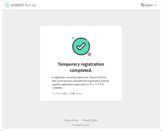 Your account registration is now complete. Please proceed to the "Register as a Supplier" section.