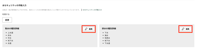 - [取水の種別詳細]または[排水の種別詳細]の[編集]をクリックします。