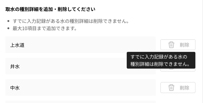 自社の実態に合わせ、水の詳細な分類(上水道、工業用水など)をカスタマイズできます。